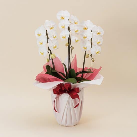 プロが育て、プロが選別した鮮度の高い胡蝶蘭をお届けします。清楚で気品溢れる大輪胡蝶蘭は、開店祝いや開業祝いなど、お祝いのシーンにピッタリです。幅広い用途にご利用頂けます。