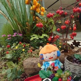 ポルルンの周りにはスズバラやフォックスフェイスなど秋の枝物やお花がいっぱい♡