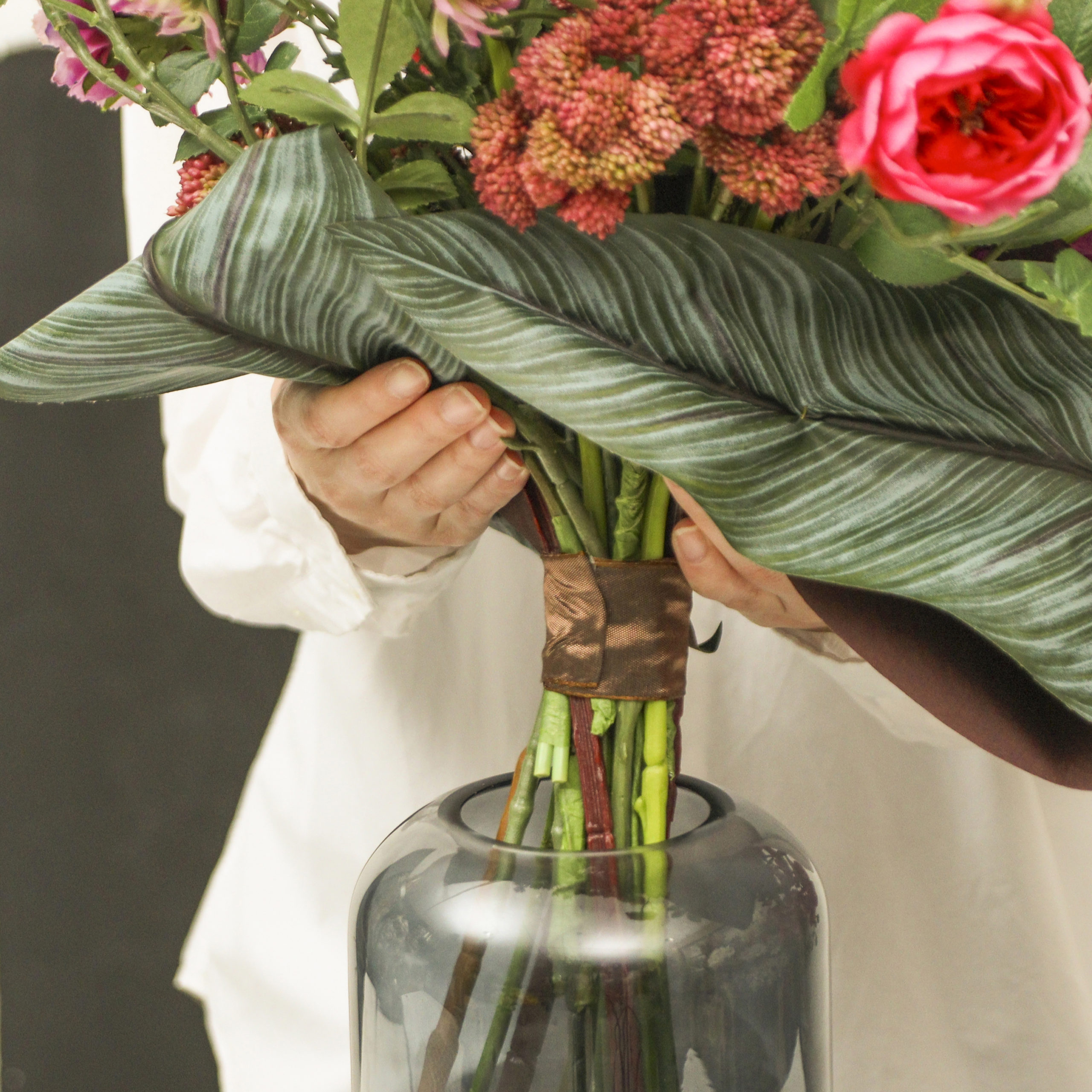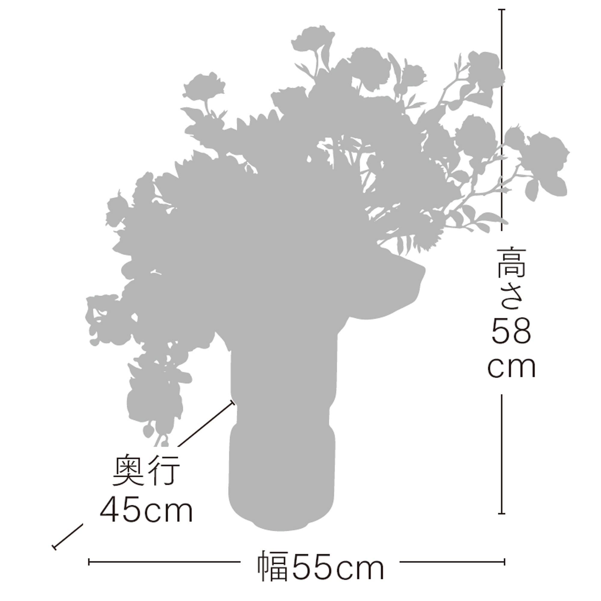 アレンジメントで使用している花材・葉材に関して、在庫状況により若干変更になる場合もございます。