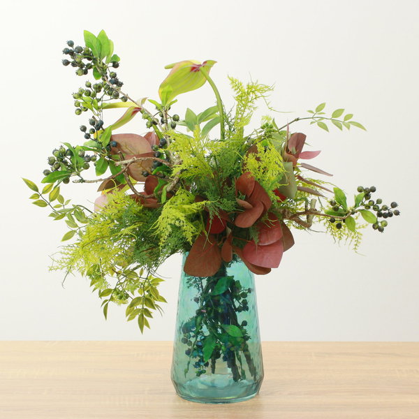 アレンジメントで使用している花材・葉材に関して、在庫状況により若干変更になる場合もございます。