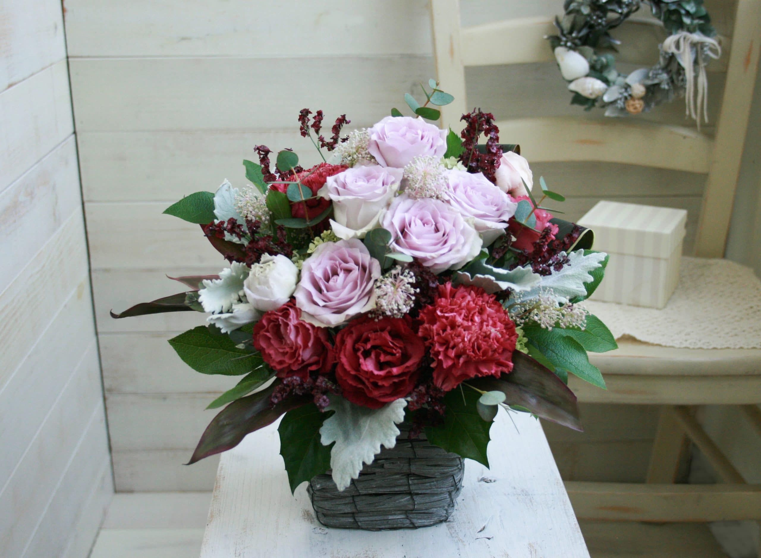 エレガンスで大人っぽいむらさき色のアレンジメント。