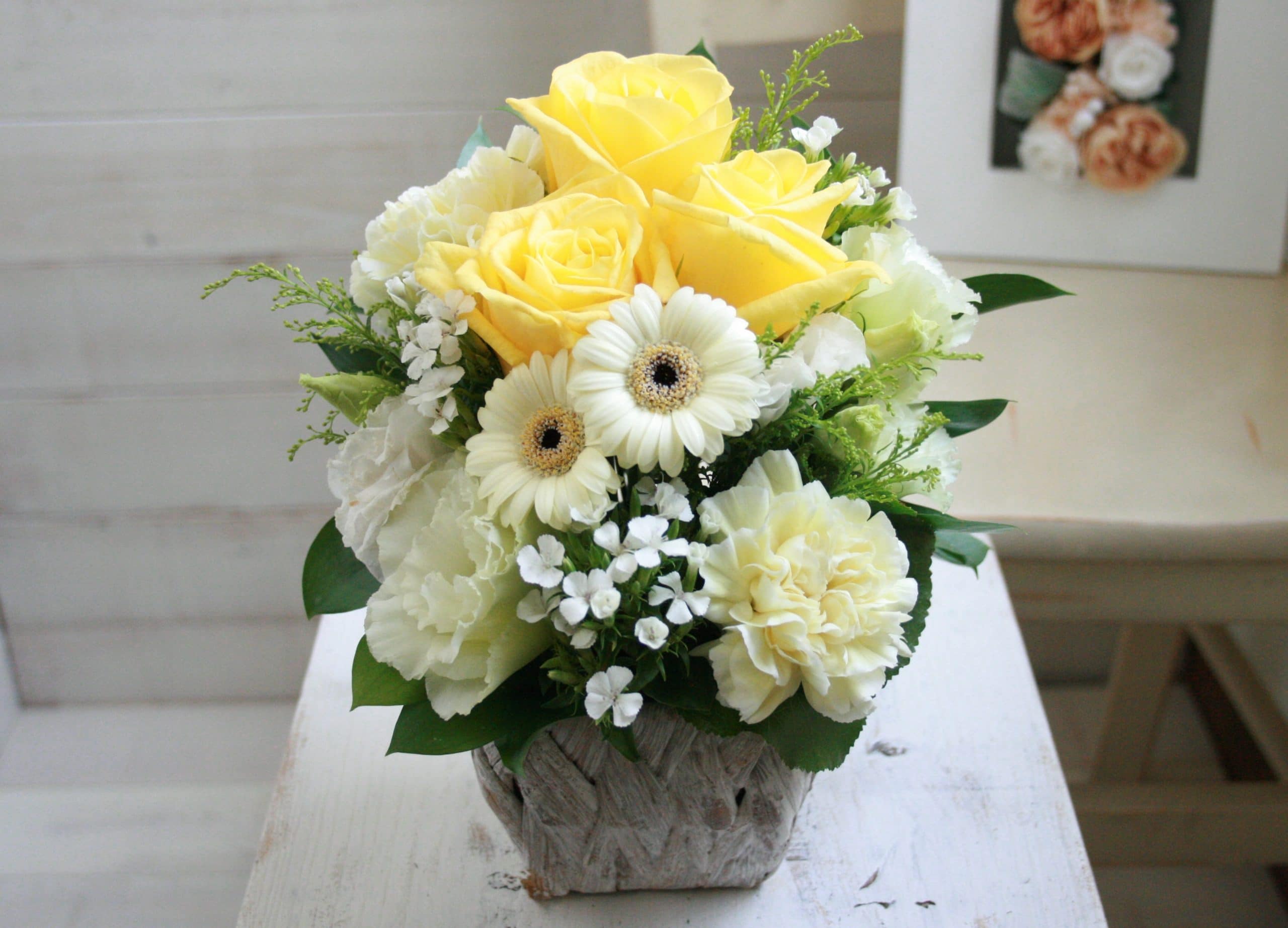 旬のお花を使ったおまかせのアレンジメントです。