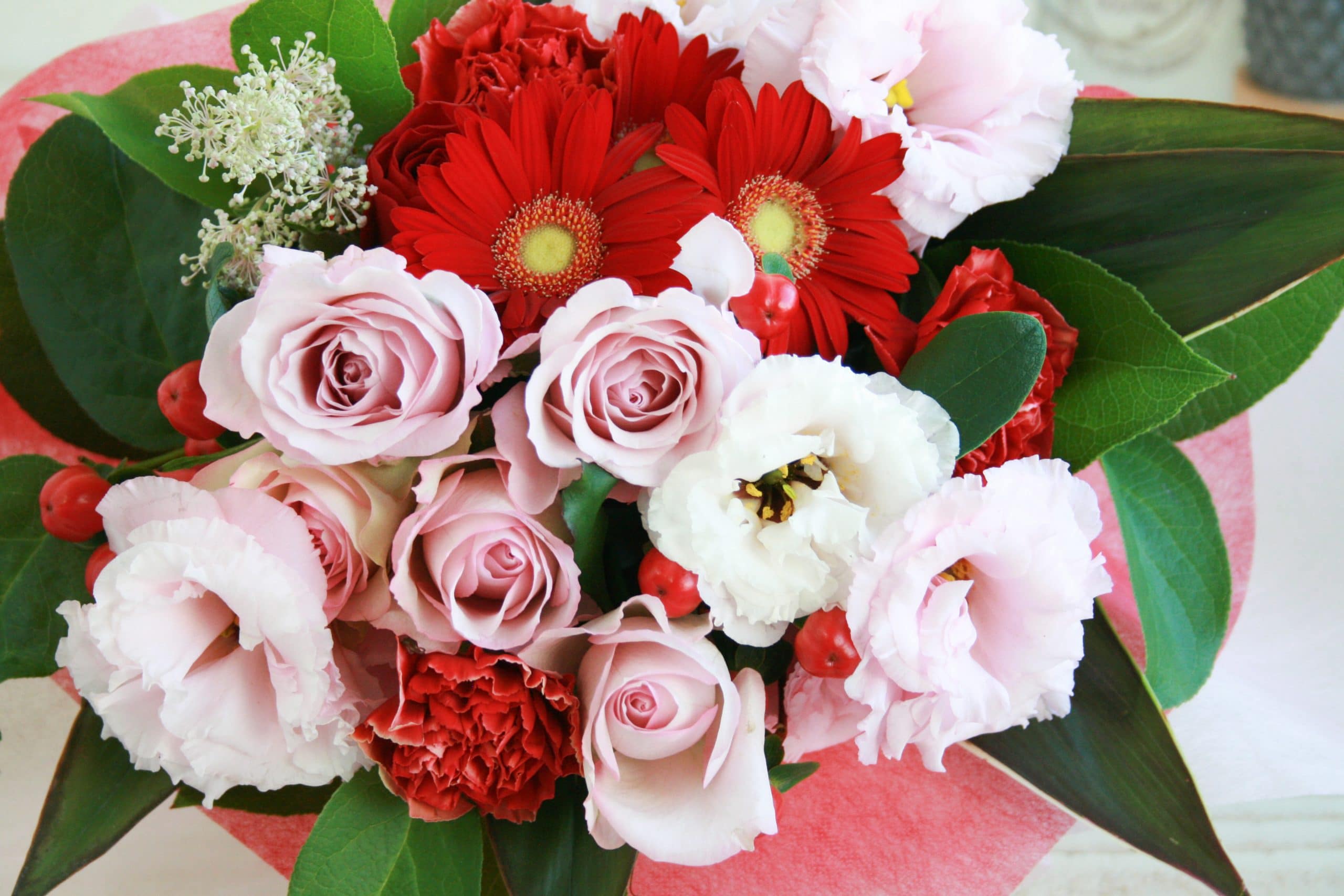 華やかで可愛らしいイメージの赤・ピンク系は女性に喜ばれます。