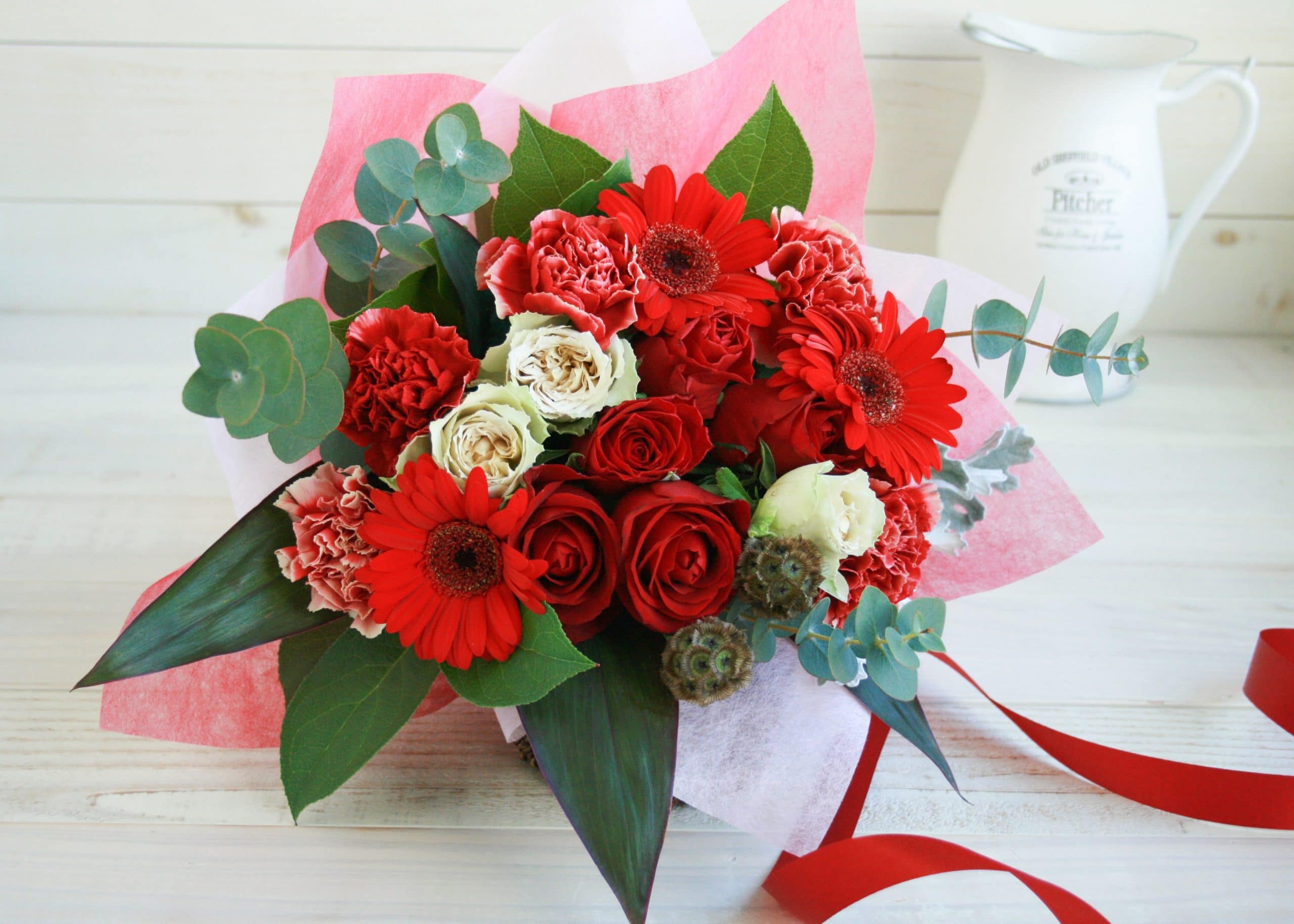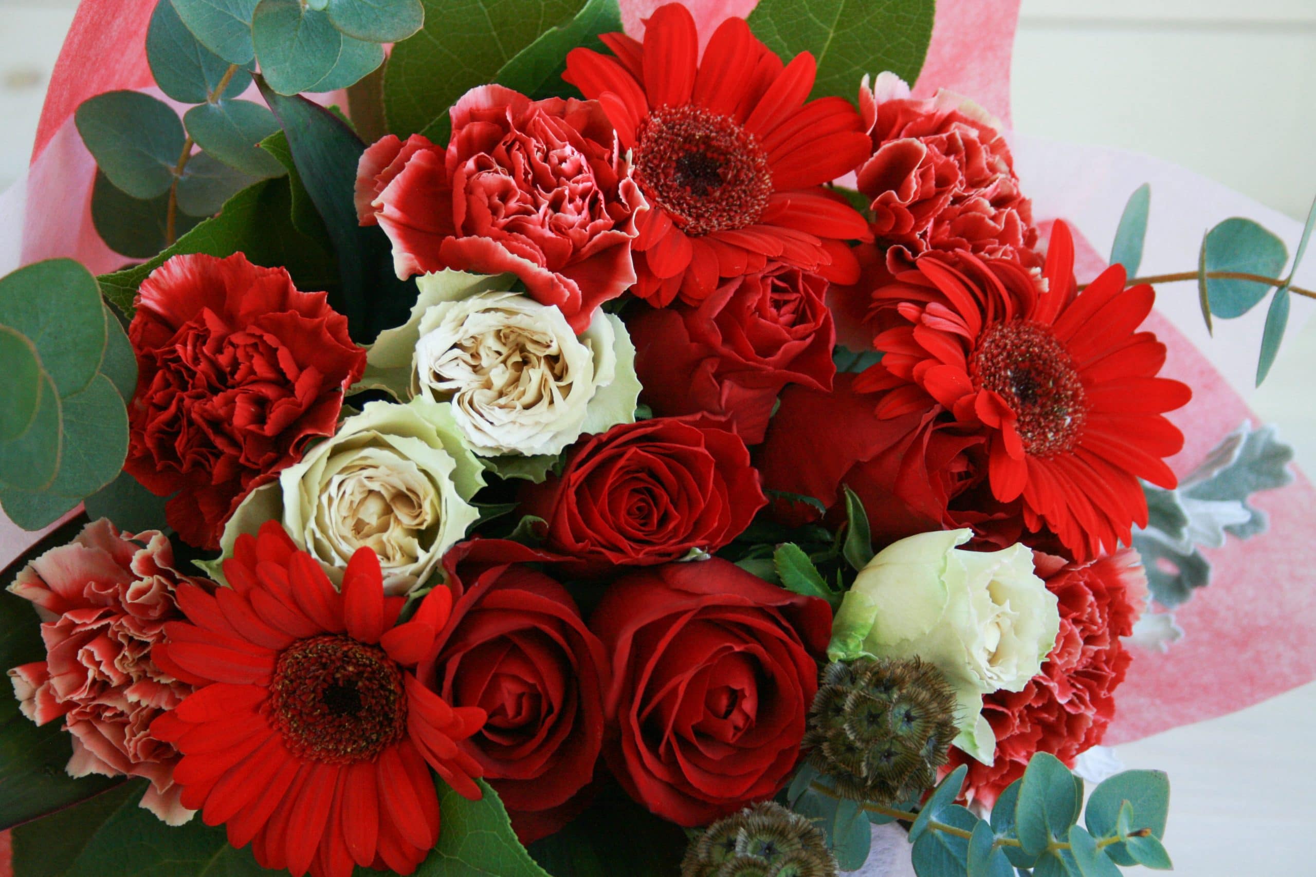 おまかせ花束M-赤系