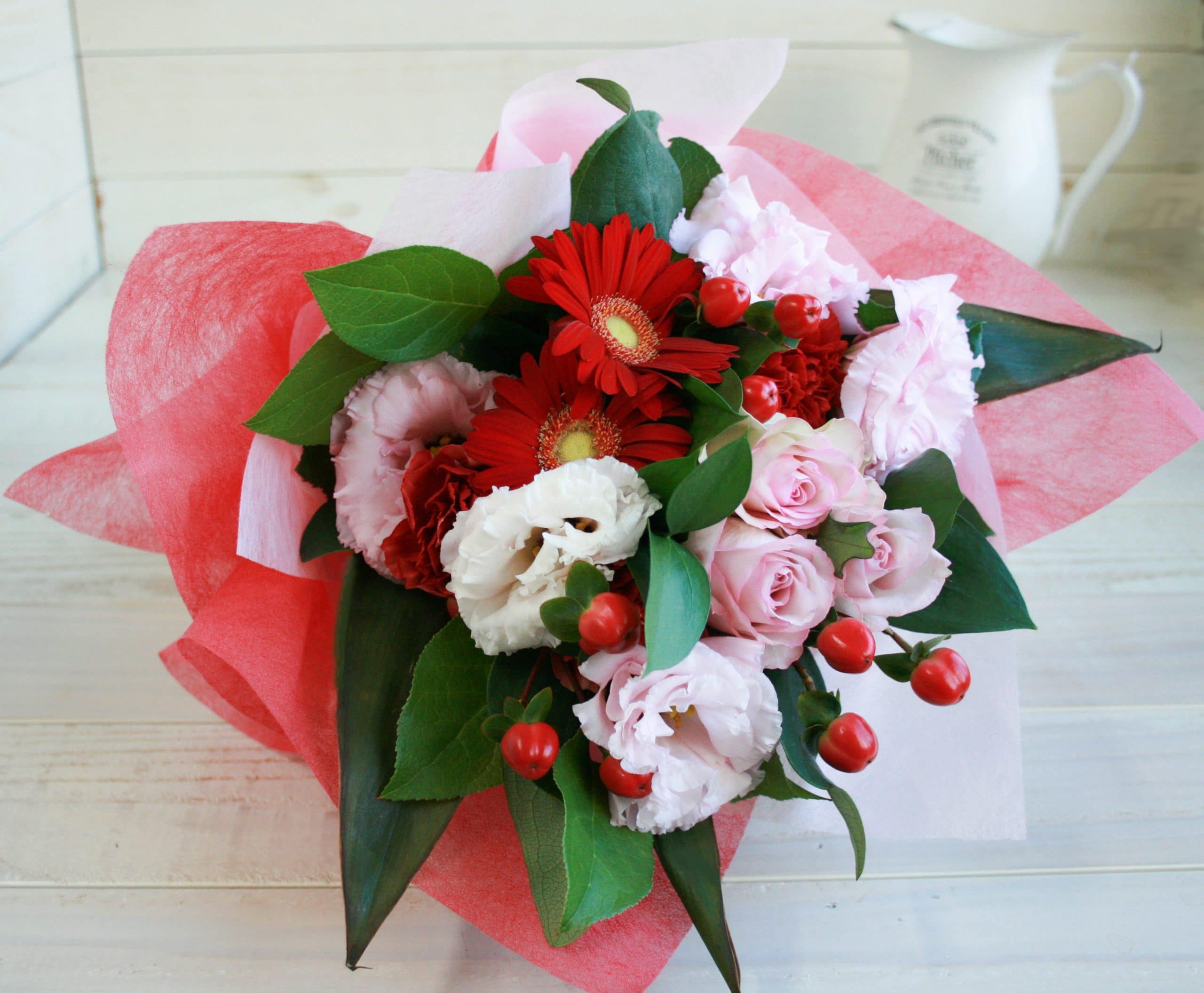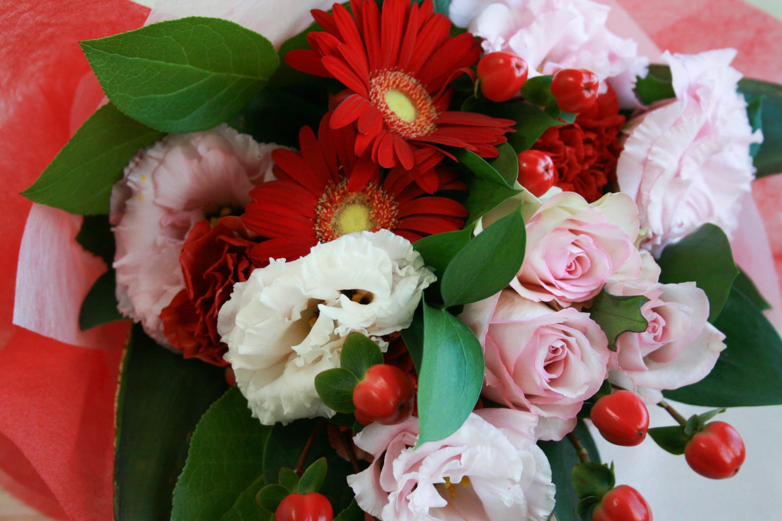華やかで可愛らしいイメージの赤・ピンク系は女性に喜ばれます。