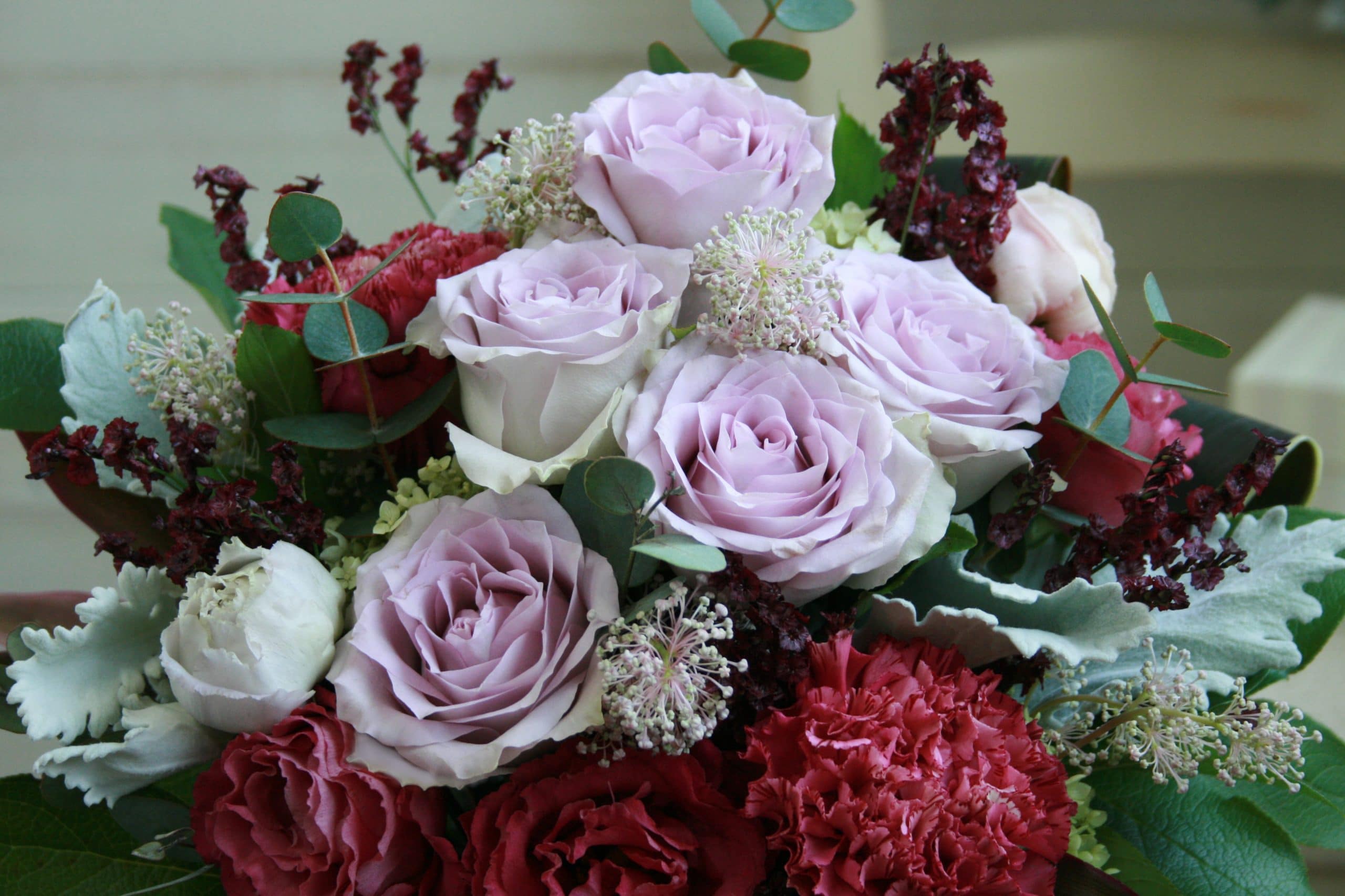 エレガンスで大人っぽいむらさき色のアレンジメント。