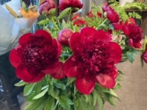 今が旬のシャクヤクですが、深紅のシャクヤク、レッドチャームが入荷しました! お花がおおきくてとても人気です。 お試しください。1本550円です。お求めは花天使南口店へお越しください。