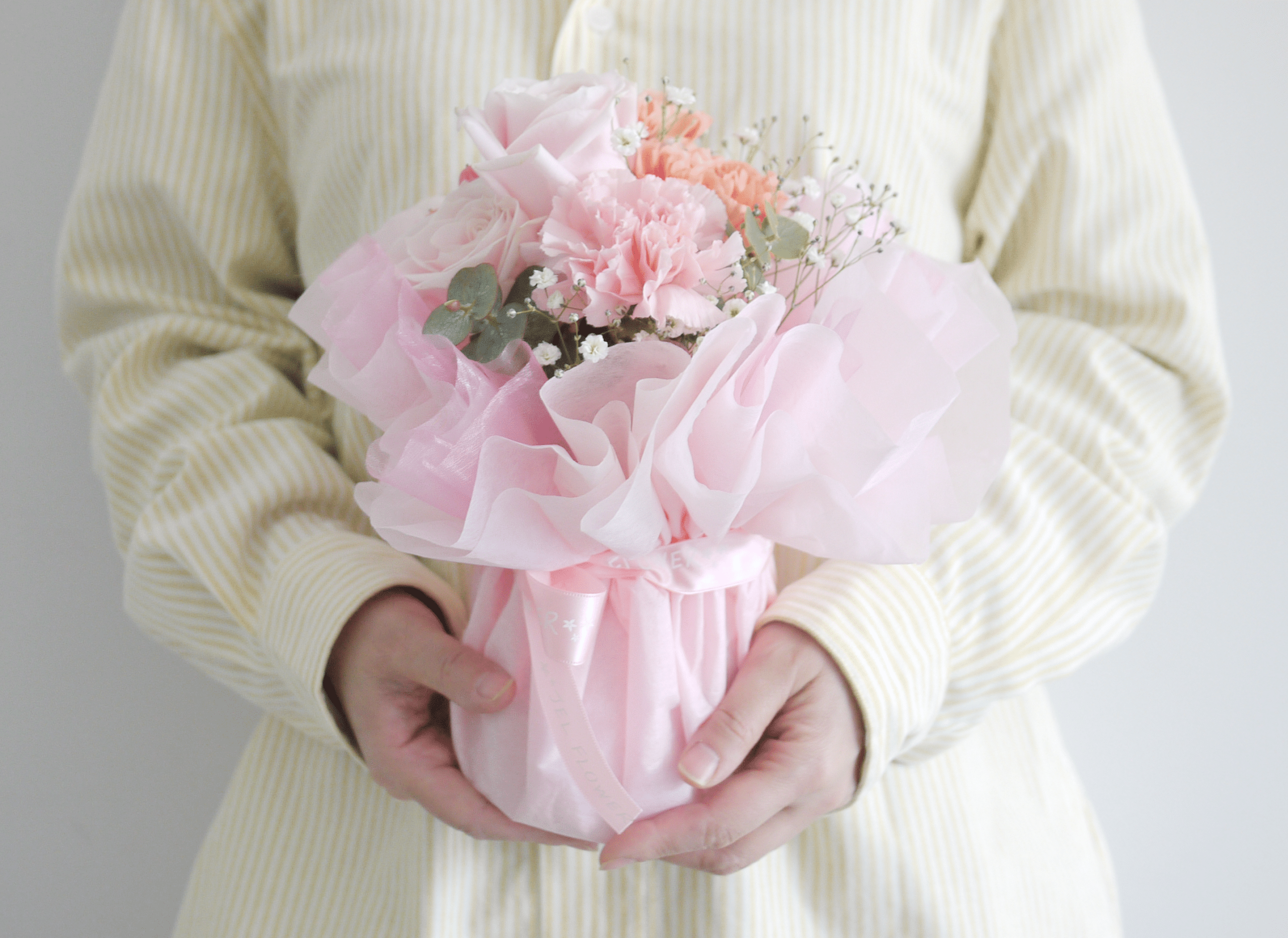 商品の色・形態は、多少写真と異なる場合があります。ラッピングの中にエコゼリー入りのブーケスタンドがセットあるので、お水をあげる必要はありません。