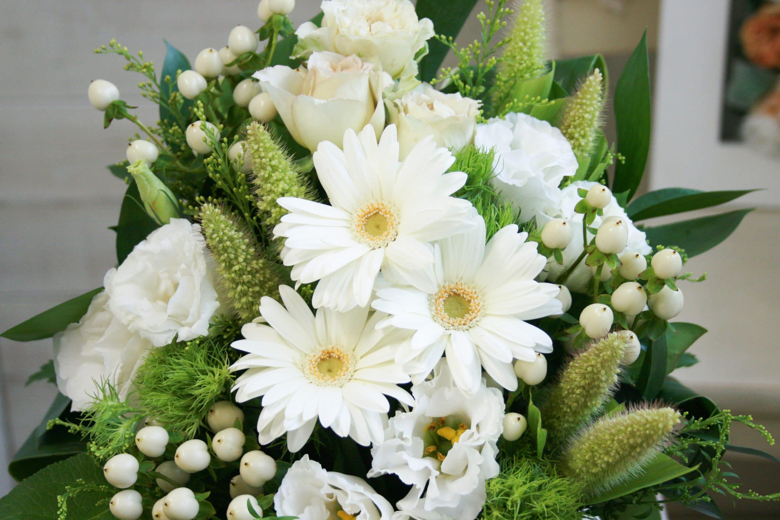 上品で優しい雰囲気の白・グリーン系は、結婚や出産のお祝いにも人気です。