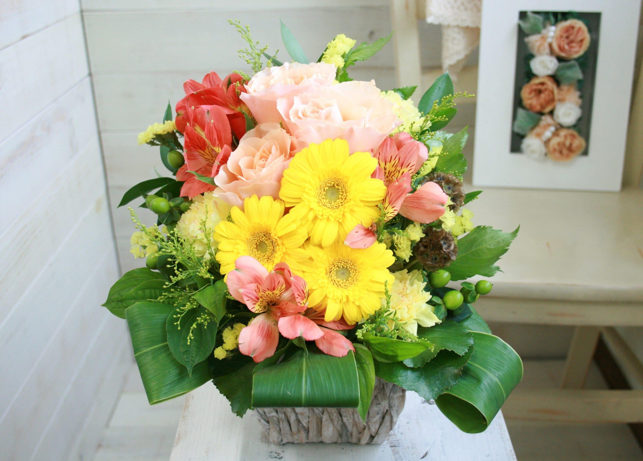 旬のお花を使ったおまかせのアレンジメントです。